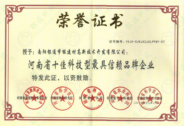 授予:南陽銀通節能建材高新技術開發有限公司: