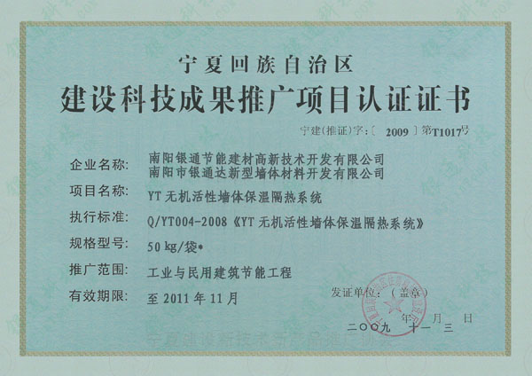 有效期限 至2011年11月    頒發日期:2009年11月3日