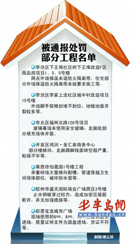 市城鄉建設委建管局有關負責人表示,對上述施工質量問題較多的工程項目相關責任主體和責任人,已在檢查過程中給予處罰,并予以全市通報批評,要求全市各建設行政主管部門和責任主體進一步排查工程及管理上的漏洞,切實提高青島的建筑工程質量水平。