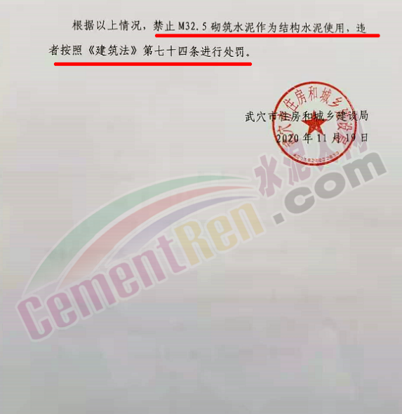 緊急通知!禁止使用M32.5砌筑水泥作為結構使用!